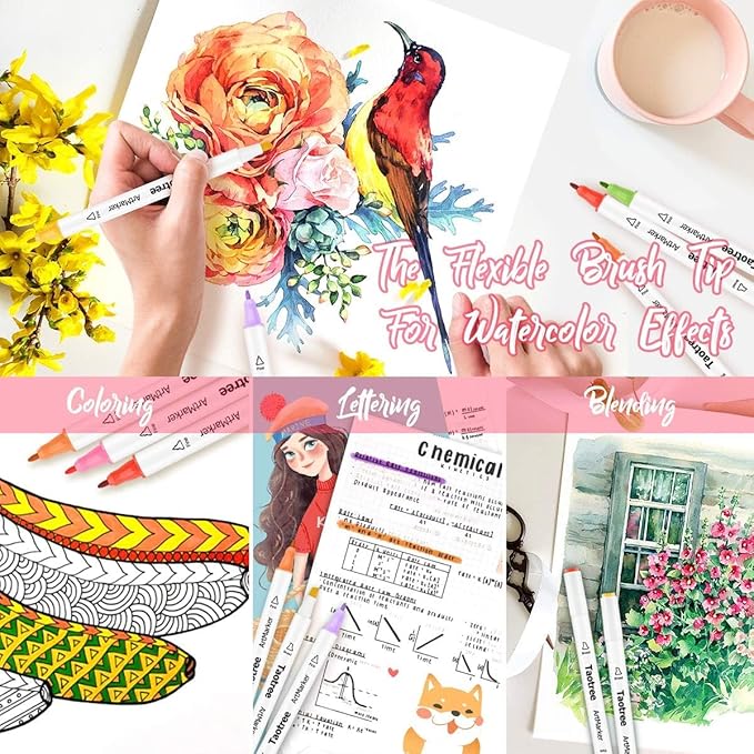 - Dual Tips Art Markers: 100 MULTIPLE Colors + 1 Free Colorless Blender. Valued artist markers set for adults, coloring books, artist sketching, illustration, drawing, calligraphy lettering beginners, underlining, card making, architectural design, advertising rendering, landscape, and other forms of comic design etc. Great as art markers, sketch markers, drawing markers, permanent markers, paint markers, brush markers pens, alcohol based markers