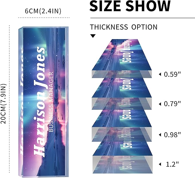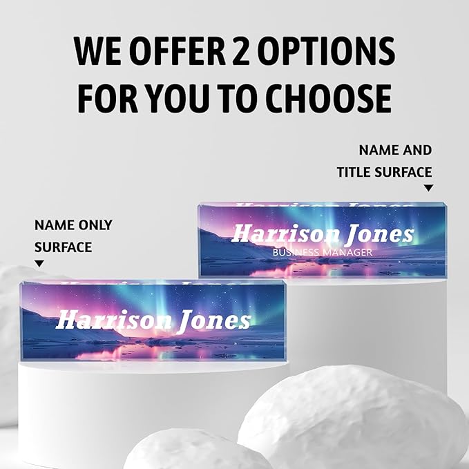 - 【High-Quality Acrylic Material】Our factory uses high-quality solid acrylic blocks to make name plates, and uses the latest high-definition UV printing machine to ensure that the content on the acrylic name plate is clear and not easily faded. So it will stand out on any desk, fully reflecting your professional ethics.