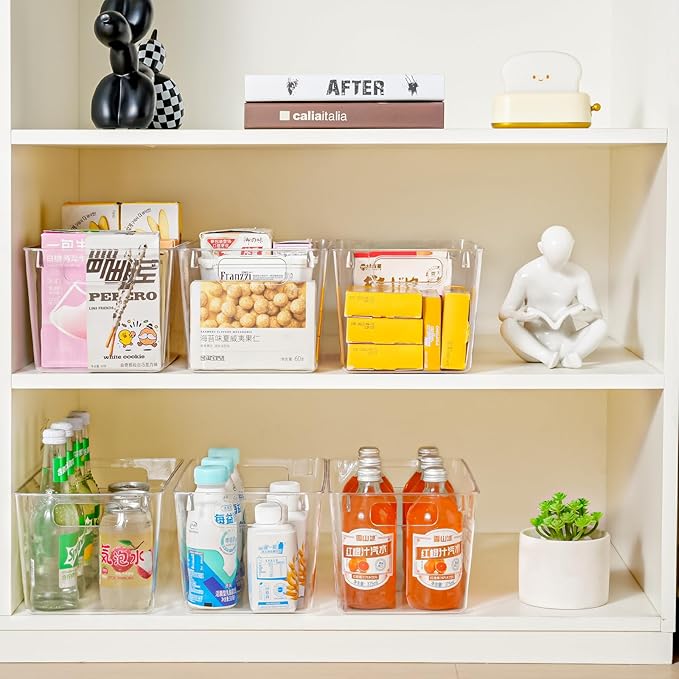 6 Pack Large Clear Plastic Storage Bins,Plastic Containers with Handle for Pantry Organizer and Storage,Perfect for Kitchen,Fridge,Cabinet, Closet,Bathroom Under Sink Storage