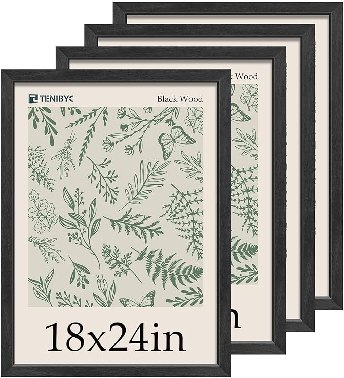 18x24 Poster Frame 4 Pack - Black Solid Wood Picture Photo Frame - Woodgrain Series - Room, Office, Gallery, Studio Display - Wall Hanging