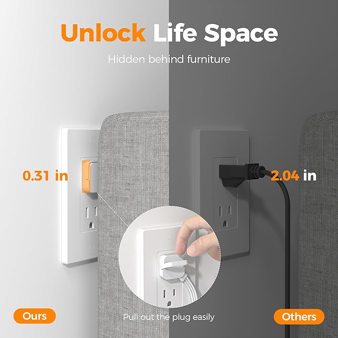 - Easily Pull Out Flat Plug: TESSAN 0.31 inches ultra thin flat head includes a built in pull ring for easy unplugging in tight spaces like behind TV or sofa; The design make this flat plug power strip inserted or removed effortless and safe