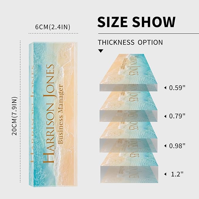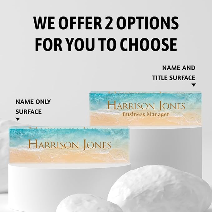 Personalized Name Plate for Desk, Custom Desk Name Plate, Acrylic Name Plate Office Desk Accessories, Personalized Office Gifts for Coworkers Teachers, Employee Appreciation Gifts (B-Beach)