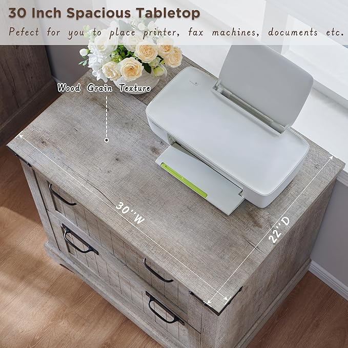 - 30 Inch Spacious Desktop:This office filing cabinet is a powerful assistant for your efficient work. 30 inches spacious desktop has a rustic finish with a delicate touch, being stain-resistant and easy to clean. No matter if you use it intensively for a long time or accidentally cause bumps or water spills, it will always remain aesthetically pleasing and practical.