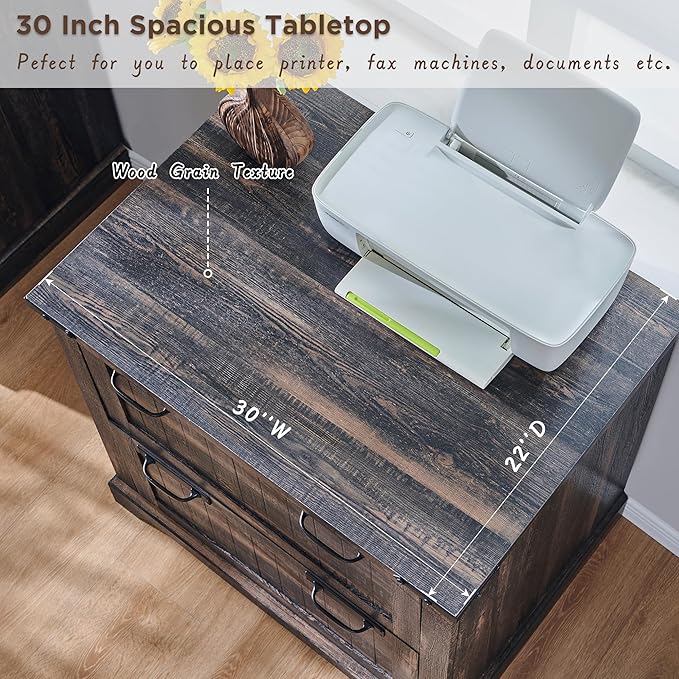 - 30 Inch Spacious Desktop:This office filing cabinet is a powerful assistant for your efficient work. 30 inches spacious desktop has a rustic finish with a delicate touch, being stain-resistant and easy to clean. No matter if you use it intensively for a long time or accidentally cause bumps or water spills, it will always remain aesthetically pleasing and practical.
