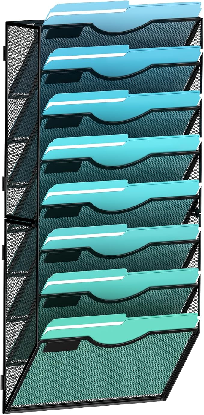 8-Tier Wall File Organizer Hanging Wall File Holder Wall Mount Paper Folder Organize, Mesh Magazine Document Mail Organizer Wall Organizer for Office School Home, Black