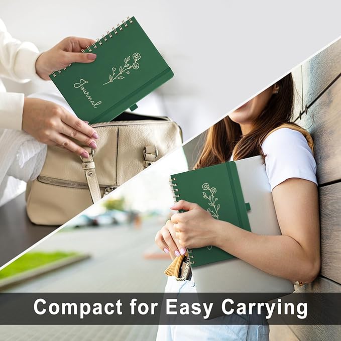 - PU Leather HARDCOVER SPIRAL NOTEBOOK: This spiral notebook features a durable, PU Leather Hardcover that protects your notes from damage. The double-wire binding allows for easy folding and 180° lays flat for convenient writing