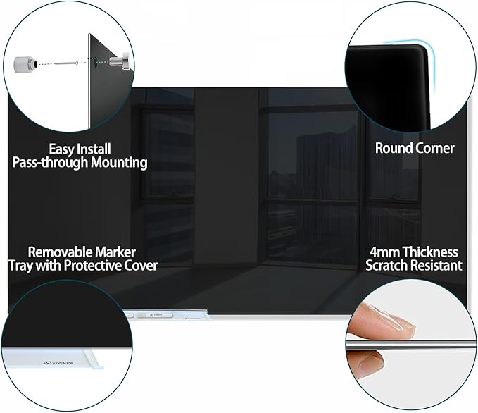 - 【ENVIRONMENTAL & LONG-LASTING】: The strong durable tempered glass surface resists stain and ghosting. Designed with 4mm thickness, rounded corner, and smooth edges. Cleaner, safer, and longer-lasting than traditional whiteboards.