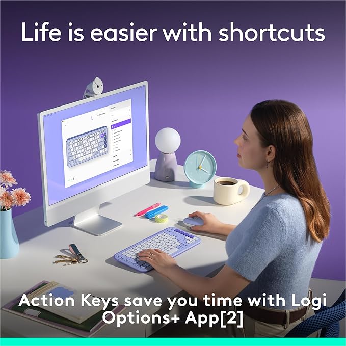 - Life Is Easier With Shortcuts: Quickly switch between work, social, and break (Netflix, Spotify) modes, or access your AI tools in less than 1 second (2) with the Action Keys and Logi Options+ App (1)