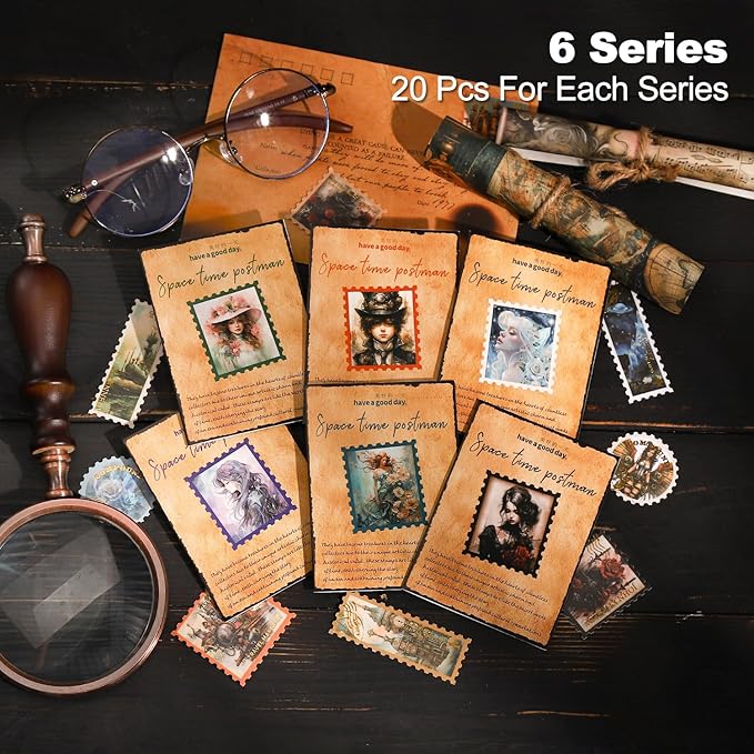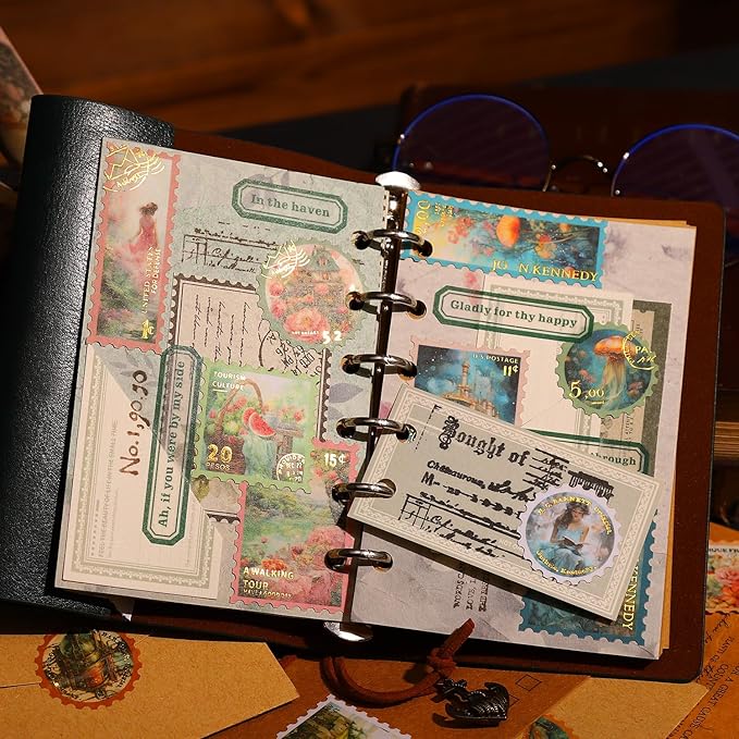 - Unique Vintage Design: The Space Time Postman sticker pack features exquisite vintage designs inspired by historical and cultural elements, enhanced with elegant gold foil accents. Perfect for adding a nostalgic and luxurious touch to your scrapbooks, journals, and DIY crafts with intricate patterns and high-quality prints.