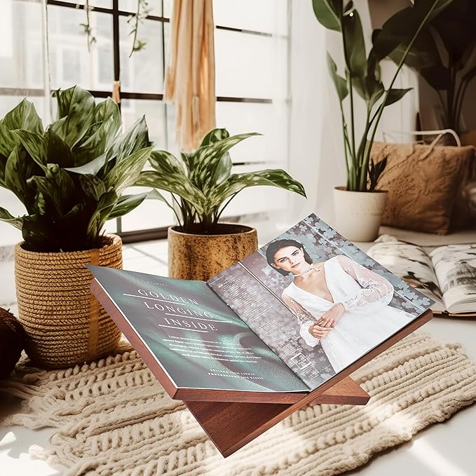 - MORE BOOKS WELCOME - Artwork, Bible, Cookbook, Magazine, Newspaper, Recipe Book, Textbook...the book you favorite. If it's shaped like a book, use this wood cross-frame holder to display them! The unique style protects the spine of your book as you do not need to open your book flat. It is a perfect angle to read from.