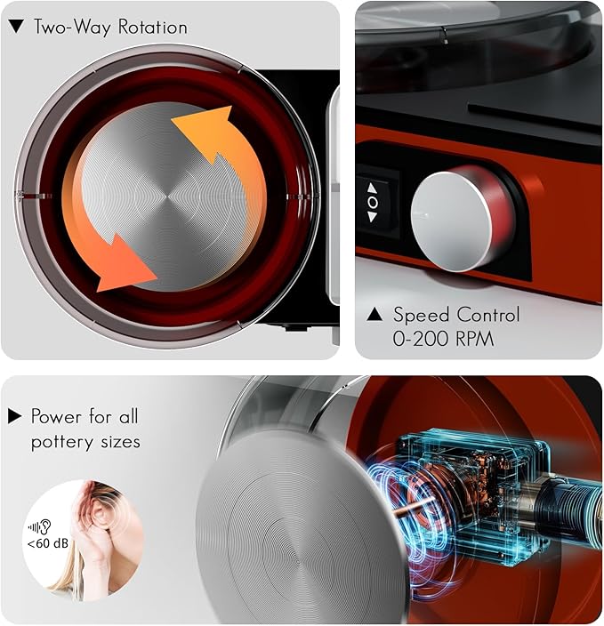 - Portable & Removable Basin: The Christmas pottery wheel operates quietly at a noise level of 60db and features a strong, sturdy 6" metal plate. The removable basin allows for easy cleaning, making this the perfect mini pottery wheel for various creative environments, from home to school.