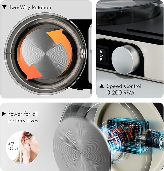 - Customizable Speed Function: Personalize your clay molding experience. Our pottery wheel provides an adjustable speed feature, adept at accommodating various artistic styles, techniques, and proficiency levels.