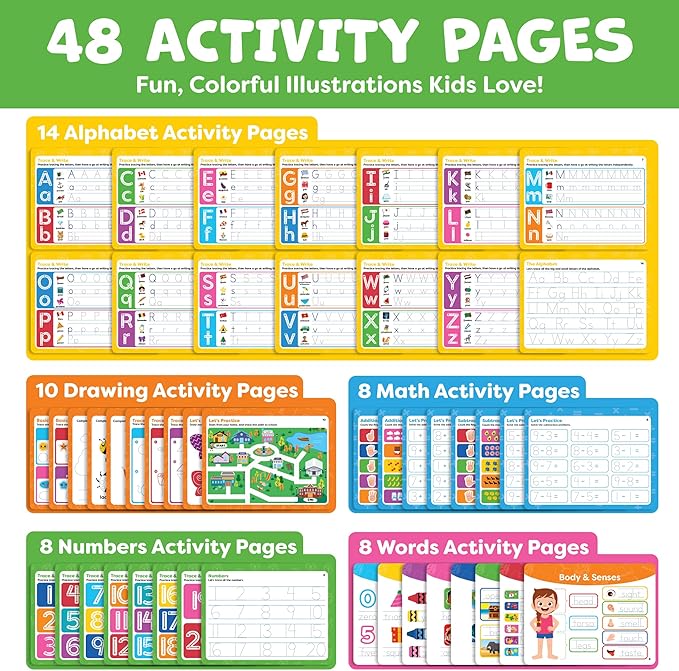 - Top-Rated Educational Gift. This activity book for kids ages 3-5 and up blends fun with real skill-building. From Christmas to birthdays or back to school supplies season, it's loved by teachers and parents alike. Ideal as a writing practice tool for kids age 5-7, it sparks creative play while developing handwriting and hand-eye coordination. Add to Cart now to support joyful learning and early literacy mastery!