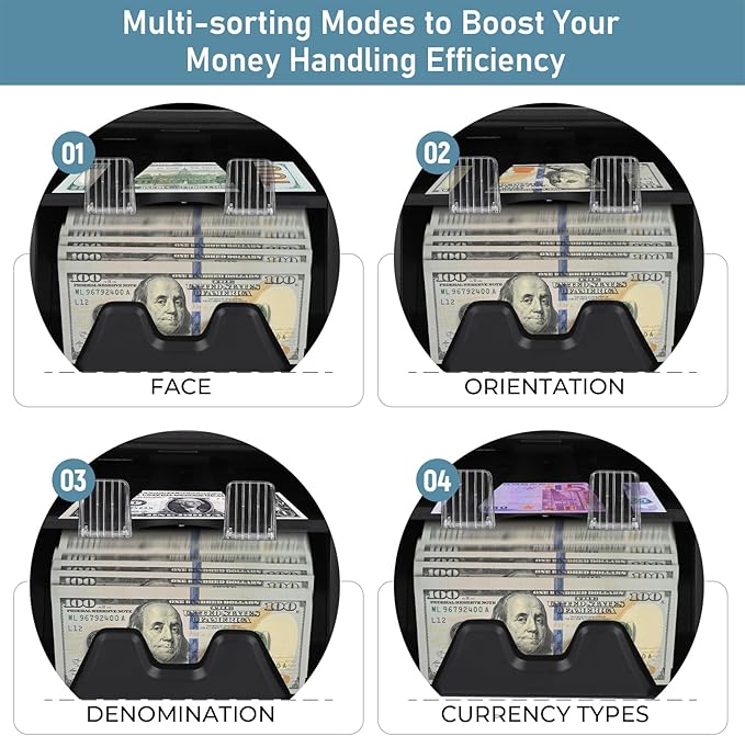 - Mixed Denomination Value Counting: The VS-35 cash counter offers multiple functions, including mixed denomination value counting, currency auto-detection, single denomination counting, multi-currency mix counting (USD, EUR, GBP, MXN),Accumulation,Amount and quantity presets. With a counting speed of 800-1200 pieces per minute, it can connect to a PC or Nucoun's printer, making it ideal for banks, currency exchange shops, and small businesses