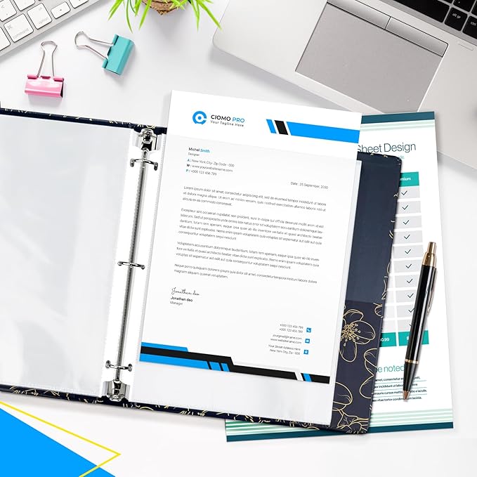 - Standard Hole Punch Design: Standard hole punch design fits into any 3-ring binder, allowing you to organize and store your documents easily