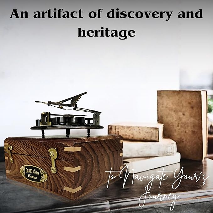 - Size:- 15cm - L x 15cm - W x 7cm - H (Wooden Box); Size:- 12.5cm - Dia x 5cm - High (Sundial Compass)