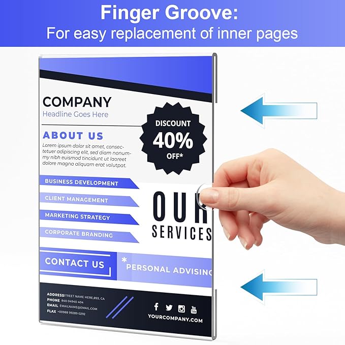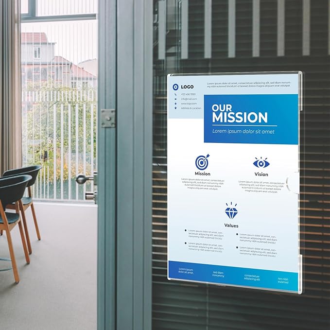 - โ ใWidely UsedใThe sign holderโs transparent offers a superb display information effect with an 8.5x11 inches paper. It will apply to virtually any flat surface such as drywall, metal, plastic, wood, and glass wall mounted.