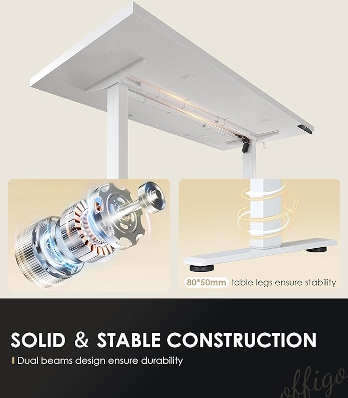 - Sturdy Construction: The sit stand desk features an industrial-grade steel frame that ensures excellent durability while supporting more weight. The dual beam structure design and 80*50mm table legs has better stability, making the lifting more smooth