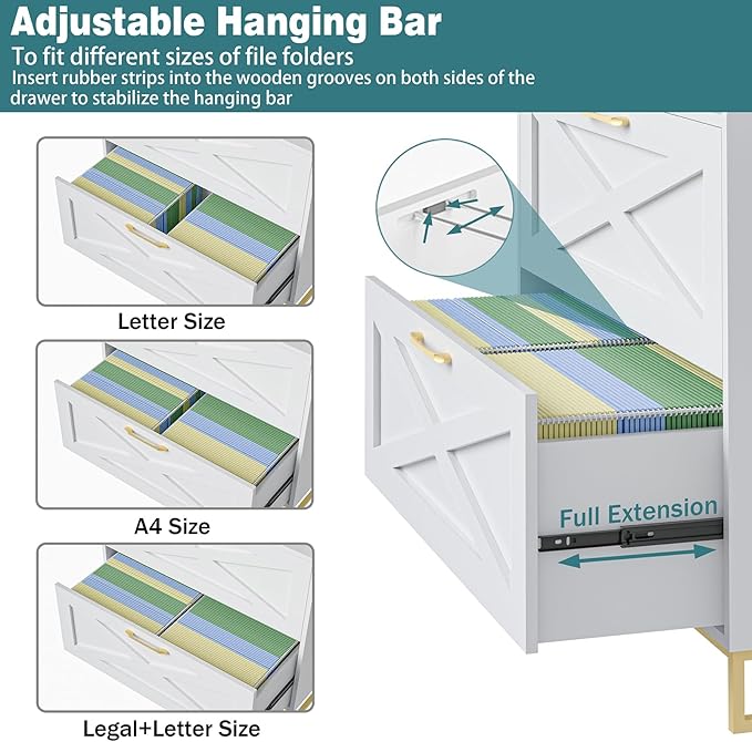 - 🛠️【EASY ASSEMBLY & EXCELLENT CUSTOMER SERVICE】Thank you for your support and trust in our File Cabinets. Our White and Gold File Cabinets with clear step-by-step Instructions and numbered pieces Hardware Pack for easy assembly. ☎️Vabches provides trusted service, Please feel free to contact Vabches service team.