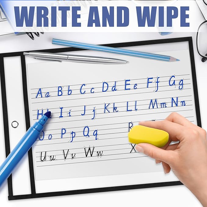 - [Write and Wipe Dry Erase Pockets] It is easy to clean the writing on the clear waterproof surface. Help to save ink, paper copies, money, and print time