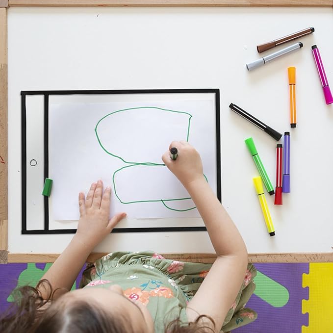 - [Large Size Organization] The dry erase pockets measure 9.5x12 inches inside, making them the perfect size for a variety of needs, including 8.5x11 inches of paper, 9x12 inches of paper, and more. And the large size makes it easy to change the paper in it