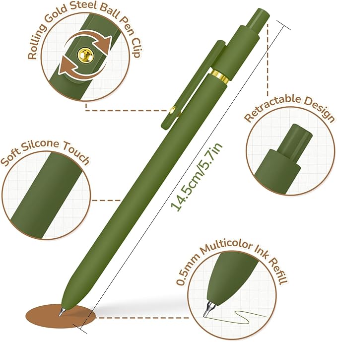 - Vintage Colors: The colored pens come in 6 different vintage inks, and the pen barrel matches the ink color. Whether for journaling, note-taking, drawing, or writing, you can find the color you need instantly