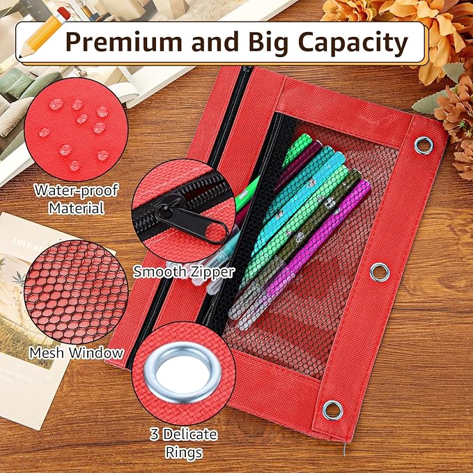 - 【Easy to Carry】Lightweight and easy to carry, the 3 ring binder pencil pouch can be hung from bag or fit into a standard 3-ring binder