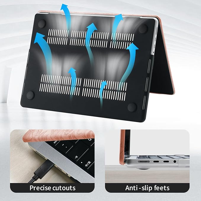 - STAYING COOL & DURABILITY: The bottom shell has two rows of vent holes and raised rubber feets for accelerate air circulation to achieving maximum heat dissipation. 4 rubber feets also provide stability and a non-slip grip, keeping your MacBook pro 16 inches in place, safer and more stable in use. The retro leather mac book pro 16 case takes into account both durability, portability and protection, suitable for using in school, office, business trip or outdoor use