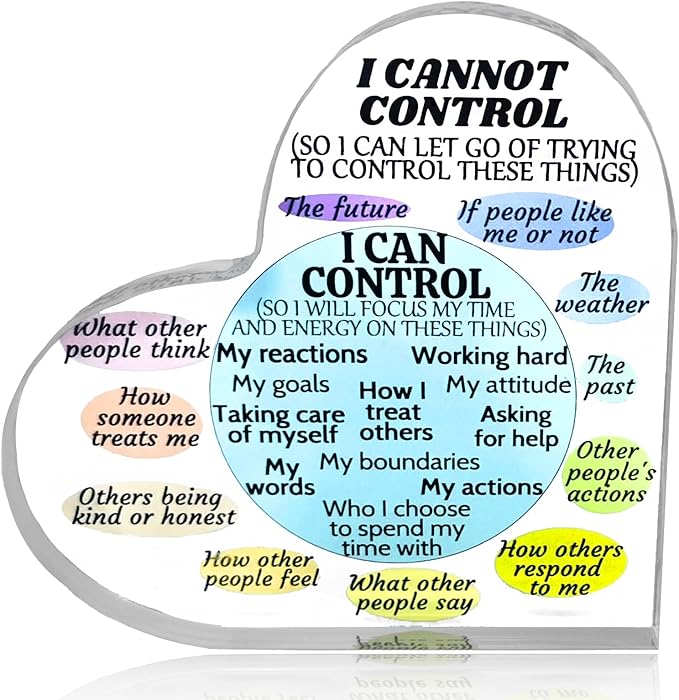 Ewong Things I Can Control Mental Health Decor, Acrylic Heart Sign for Therapist Office, School Counselor, Psychologist Room Art Decoration, Therapy Desk Plaque for Bedroom Classroom (Blue)