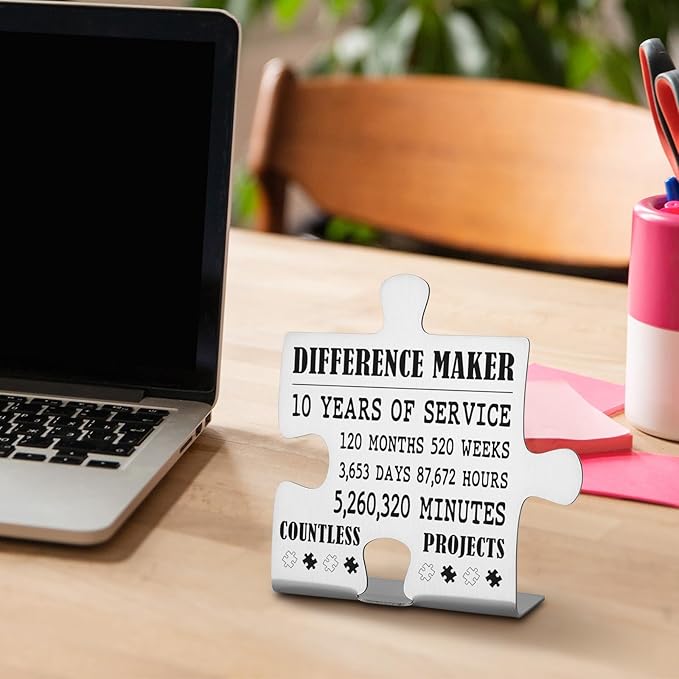 Thank You Appreciation 10 Year Work Anniversary Plaque Gifts, 10th Work Anniversary Decor Gifts for Women, Men, Employee, Coworkers, Happy 10th Work Anniversary Decorative Signs Plaques WDD12
