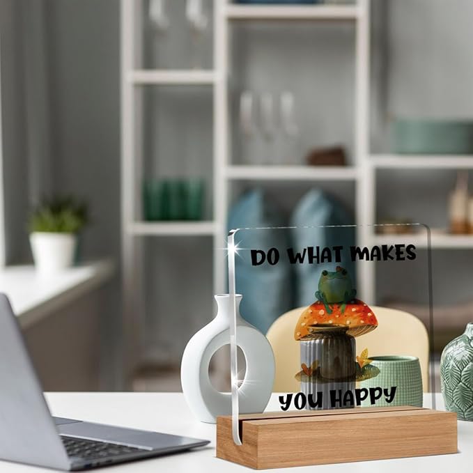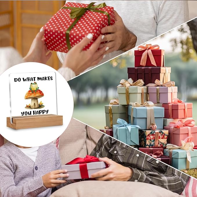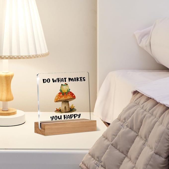 Mushroom Decor, Cottagecore Gifts for Women Men, Nature Frog Decorations, Do What Makes You Happy Bedroom Desk Decor Signs Plaque