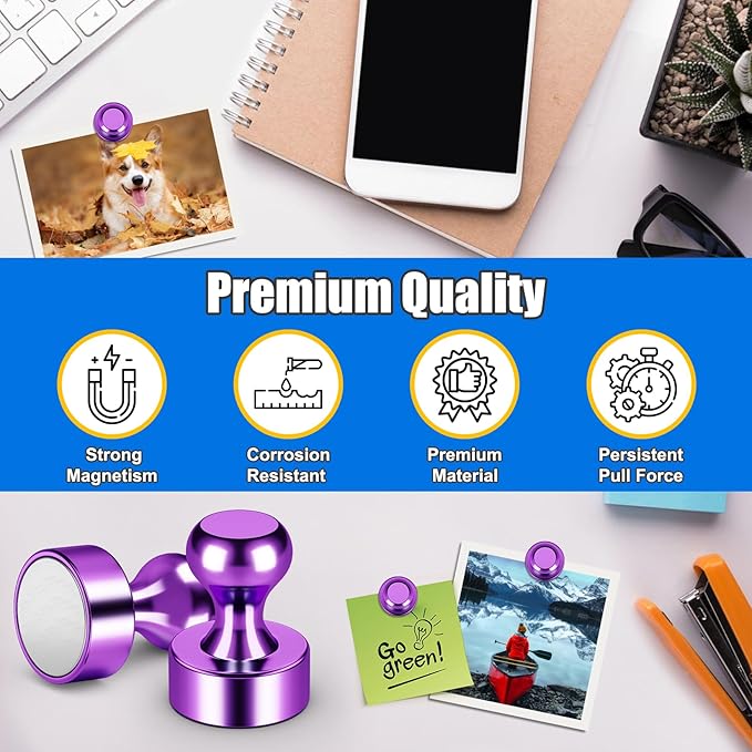 - DURABLE CONSTRUCTION: Crafted from neodymium with triple-layer coating, these fridge magnets are designed to last. Push pins magnets resist corrosion and scratches for longer-lasting performance in daily use