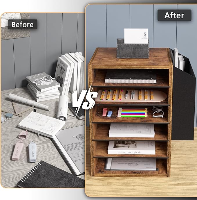 - Flexible and Customizable Storage: Our wood file organizer can accommodate over 600 A4 paper sheets in each compartment. Adjust or remove shelves to create space for taller items, tailoring the layout to suit your specific needs