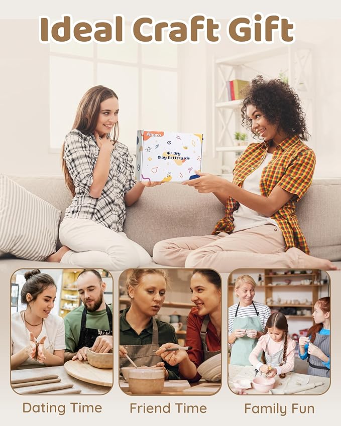 - 51 PCS Pottery Kit for Adults,Beginners, Home clay kit,home air dry clay kit for adults. Your kit includes everything needed to create unique clay creations. Enjoy a state of relaxed mindfulness as you sculpt and shape the clay into anything you can imagine. Perfect for gifting, sharing with a partner