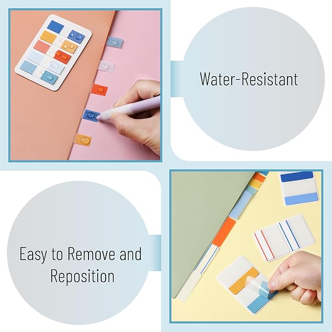 - Made from premium, durable material, these index tabs are designed to be repositionable and stick securely without leaving residue behind, perfect for both short-term and long-term use.
