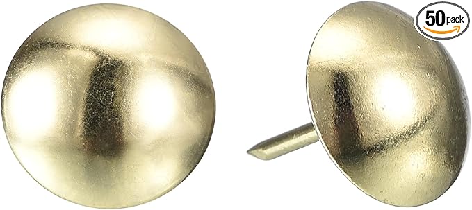 - Specifications: Material: Carbon steel; Color: Gold; Diameter of nails head: 16mm/0.63inch; Shank length: 20mm/0.788inch; Package Content: 50Pcs x Upholstery Tacks Nail Pins