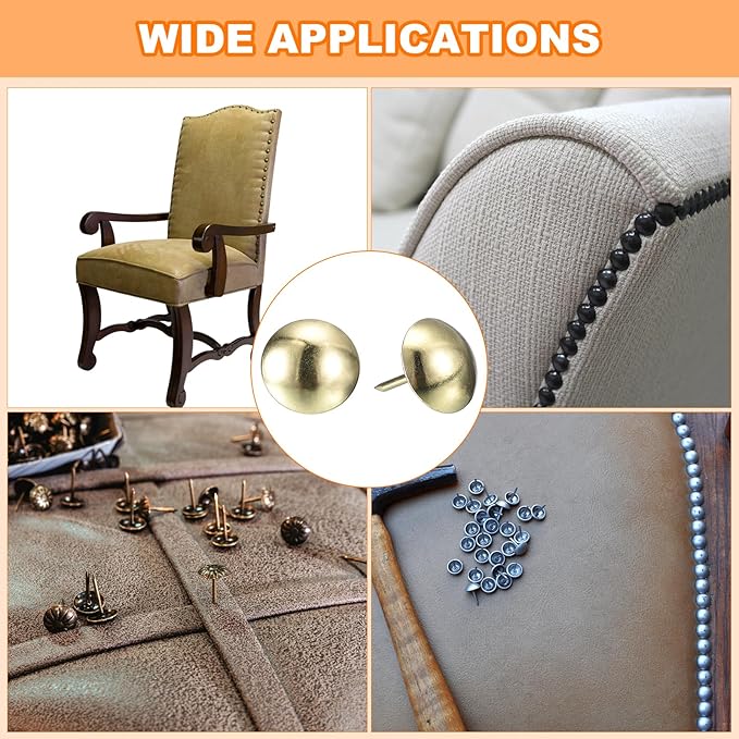 - Material: These furniture upholstery tacks are made of metal and have an electroplated finish. They are smooth to the touch, sturdy, and free of burrs, making them suitable for decorative use in homes.