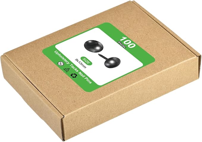 - Specifications: Material: Carbon steel; Color: Black; Diameter of nails head: 9mm/0.36inch; Shank length: 13mm/0.512inch; Package Content: 150Pcs x Upholstery Tacks Nail Pins