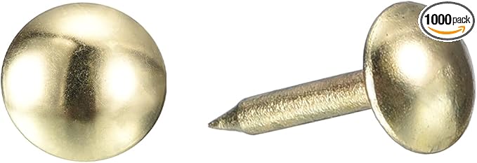 - Specifications: Material: Carbon steel; Color: Gold; Diameter of nails head: 6.4mm/0.26inch; Shank length: 13mm/0.512inch; Package Content: 1000Pcs x Upholstery Tacks Nail Pins