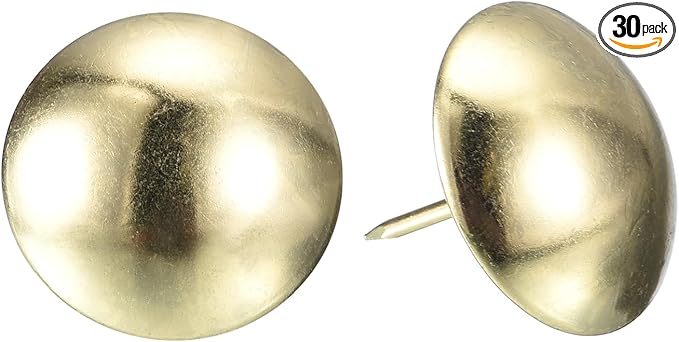 - Specifications: Material: Carbon steel; Color: Gold; Diameter of nails head: 25mm/0.99inch; Shank length: 25mm/0.985inch; Package Content: 30Pcs x Upholstery Tacks Nail Pins