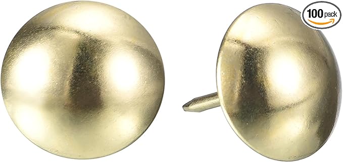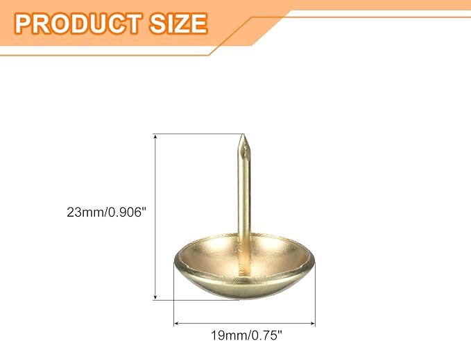 - Specifications: Material: Carbon steel; Color: Gold; Diameter of nails head: 19mm/0.75inch; Shank length: 23mm/0.906inch; Package Content: 100Pcs x Upholstery Tacks Nail Pins