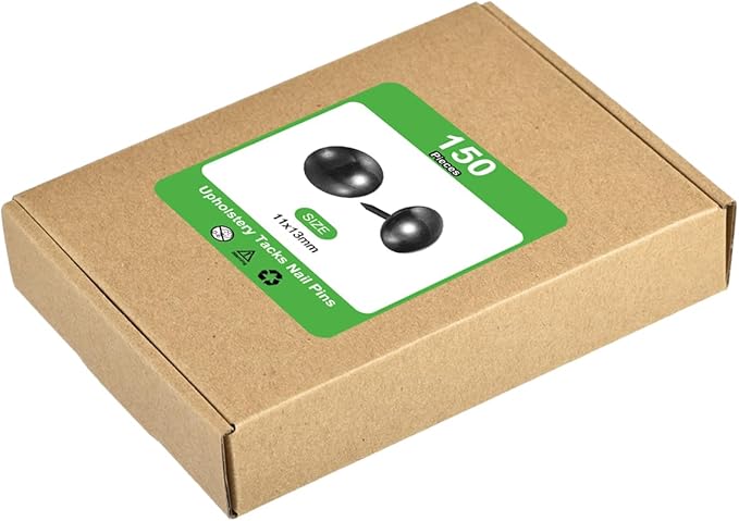 - Specifications: Material: Carbon steel; Color: Black; Diameter of nails head: 11mm/0.44inch; Shank length: 13mm/0.512inch; Package Content: 150Pcs x Upholstery Tacks Nail Pins
