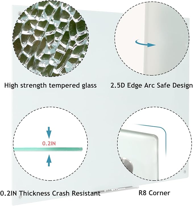 - Unmatched Durability: Our magnetic glass whiteboard features premium, high-temperature-treated glass material that is meticulously selected for superior quality and outstanding durability. With excellent scratch resistance, this high-quality glass ensures long-lasting performance, while its crystal-like texture adds an elegant touch. Experience resilience that stands the test of time.