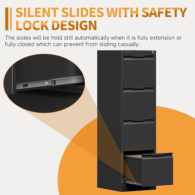 - 【Silent Slides With Safety Lock Design】The slides of Firstsky Office File Cabinets will be hold still automatically when it is fully extension or fully closed which can prevent from sliding casually.And it is virtually silent when you use the drawer. The sturdy material gives it a longer life span.