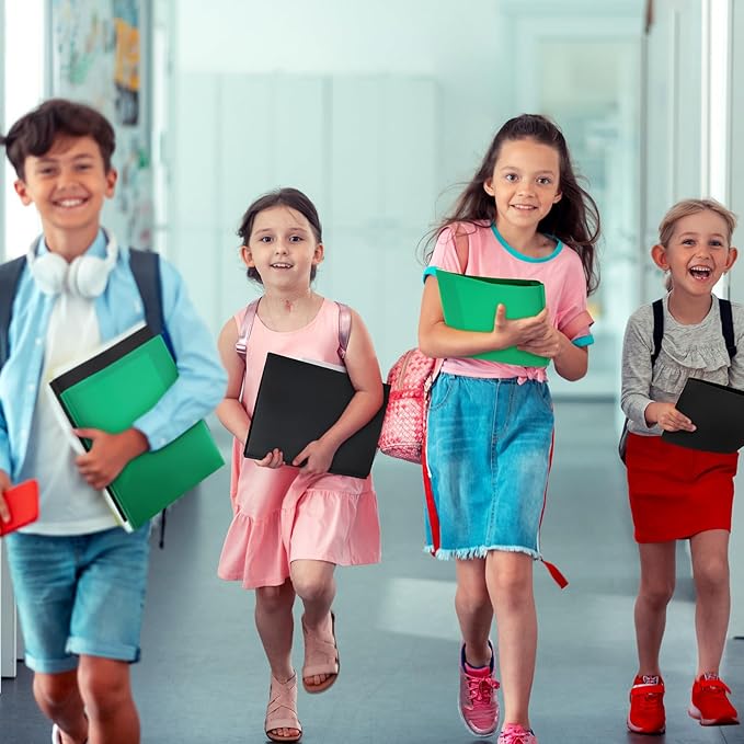 Patelai 48 Pcs Plastic Folders with 2 Pockets and 3 Prongs Home Folders with Card Slot Letter Size Heavy Duty Report Covers for Back to School(Green, Black,Classic)