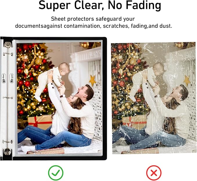 - - Crystal Clear & Durable: Not only are these sleeves functional, but they also offer a sleek and professional look. The clear plastic paper sleeves provide excellent visibility,also non-glare which makes them easy to read,allows your documents to be easily viewed, while the reinforced edges ensure durability and longevity.