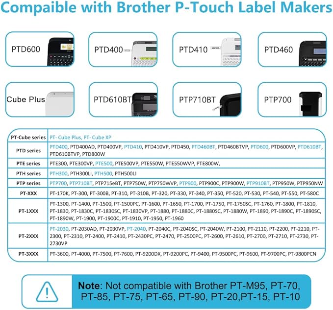 - The tz tape 18mm 0.7 laminated white compatible for Brother p-touch label maker: PTD400 PTD600 PTD400AD PTD400VP PT-D450 PT-D600VP PT-P700 PT-P710BT PT-P750W PT-E300 PT-E500 PT-E550W PT-H500LI PT-2730 PT2430PC PT-1880 PT-1830 PT-1890