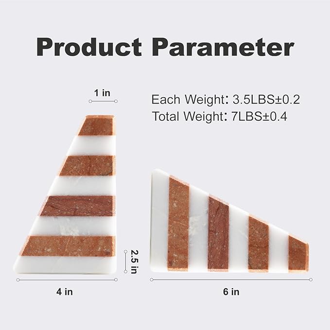 - NATURAL MATERIAL: The heavy duty marble bookend weight 7LB and are equipped with 4 non-slip pads to effectively minimize scratches on your desktop. Make your reading time more relaxing and ensure the safety of you and your family with this stone book holder.