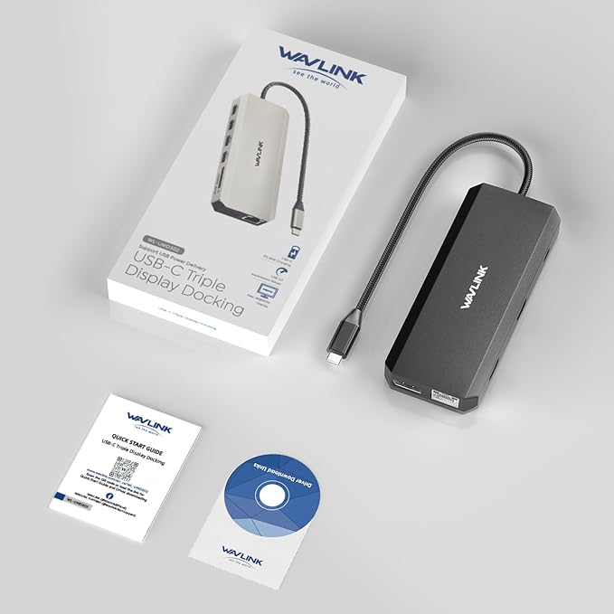 WAVLINK USB C Docking Station Dual Monitor, USB Hub Laptop Triple Display, USB C to 2 HDMI,DisplayPort, PD Charging, Ethernet, 5 USB, SD/TF Read, Audio for MacBook Dell HP Lenovo Surface, Black