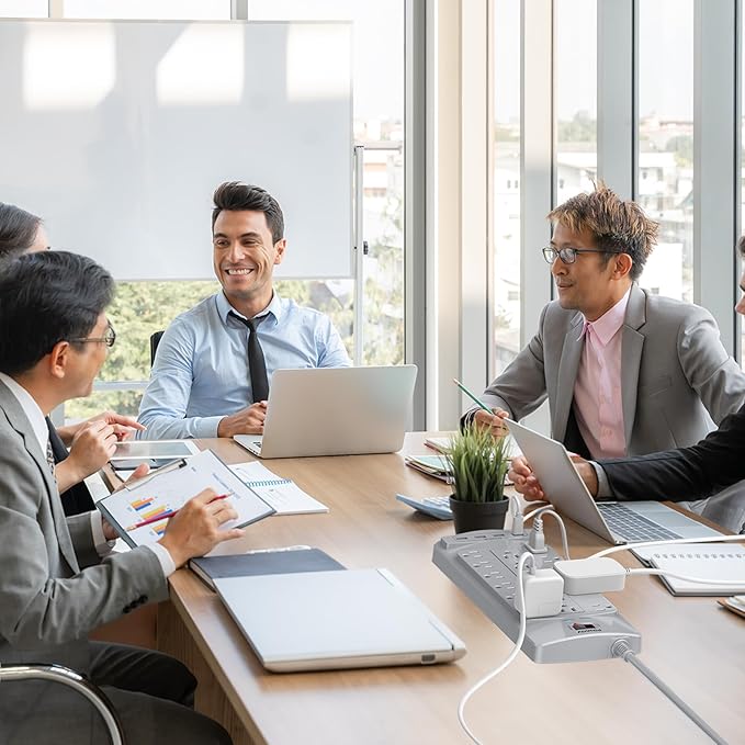 - Power Strip with 18 outlets & 4 USB Ports: 18AC outlets & 4 USB ports (5V/3.0A, 17W) power strip with 6 feet Flat Plug Heavy Duty power extension cord(1875W/15A), surge protector(2100 Joules) with overload protection protects against spikes and fluctuations,Lots of outlets for a computer desk works great for all the electronics a gamer needs.